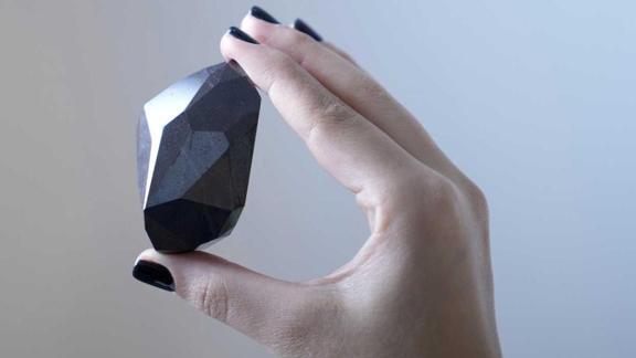 555,55 kıratlık dünyanın en büyük kesim siyah elması Enigma, Birleşik Arap Emirlikleri'nin (BAE) Dubai kentindeki Sotheby's müzayede evinde sergileniyor.