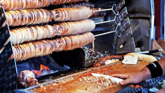 Kokoretsi-Yunanistan: Kuzu ciğeri, kalp, böbrek gibi sakatatların baharatla tatlandırılması ve şişe geçirilmesiyle hazırlanıyor.