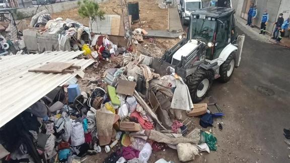 İş makinelerinin desteğiyle yürütülen temizlik çalışmasında evden 10 kamyon atık çıkarıldı.
