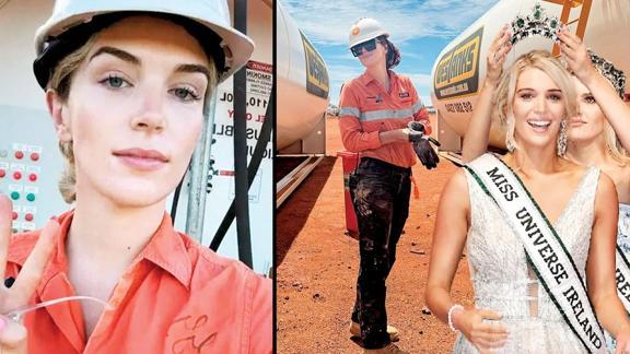 Asıl mesleği hemşirelik olan Gráinne Gallanagh, 40 derece sıcakta akşama kadar kamyon sürüyor. Şık elbiselerinin ve tacının yerini tulum ile baret aldı.