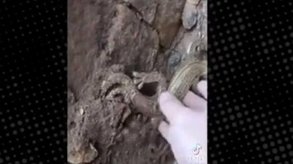 Defineci, kayayı kaldırdıktan sonra karşısına çıkan altın kaplamalı yılan figürü nedeniyle ise hem mutluluk hem de kısa süreli şaşkınlık yaşadı. Söz konusu yılan figürünün eski bir döneme ait olduğu belirtiliyor.