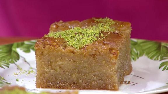 Tatlı tüm şerbeti çekip, soğuduktan sonra, buzdolabında bir süre dinlendirin ve üstünü toz antep fıstığıyla süsleyerek servis edin.