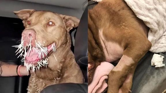Savunma iç güdüsüyle hareket eden kirpi, yüzlerce iğnesini köpeğin vücudunun birçok yerine batırdı.