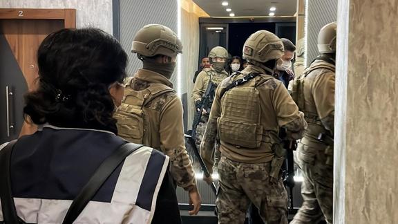 Özel harekat polisleri, baskın yapılan adreslerdeki sokakların girişinde uzun namlulu silahlarla güvenlik önlemi aldı.