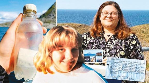 İskoçya'da 1994'te 12 yaşında olan Alaina Beresford, okulundaki bir proje kapsamında yazdığı mektubu gazoz şişesine koydu; öğretmeninin balıkçı eşi aracılığıyla denize bıraktı. Yıllar sonra bu şişe, Norveç'in Vega bölgesindeki Lisshelloya Adası'nda gönüllü çevre temizliği yapan Pia Brodtmann tarafından bulundu. Brodtmann, bulduğu mesajı bir kartpostal ile 31 yıl sonra Alaina'ya gönderdi.