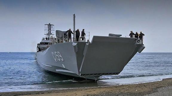 İstanbul'da Anadolu Tersanesi'nde Türk Deniz Kuvvetleri için üretilen Yeni Tip Çıkarma Gemisi Ç-159'un testleri çerçevesinde Yalova'da kıyıya çıkarma yapıldı.