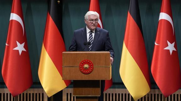 Steinmeier, Cumhurbaşkanı Recep Tayyip Erdoğan ile Cumhurbaşkanlığı Külliyesi'ndeki görüşmesinin ardından düzenlenen ortak basın toplantısında konuştu.