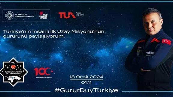 Türkiye'nin insanlı ilk uzay misyonu için heyecanlı bekleyiş sürerken, fırlatma töreni öncesi Sanayi ve Teknoloji Bakanlığının öncülüğünde hazırlanan uzay hatırası kartı, Türkiye Uzay Ajansının (TUA) internet sitesinde yayımlandı.