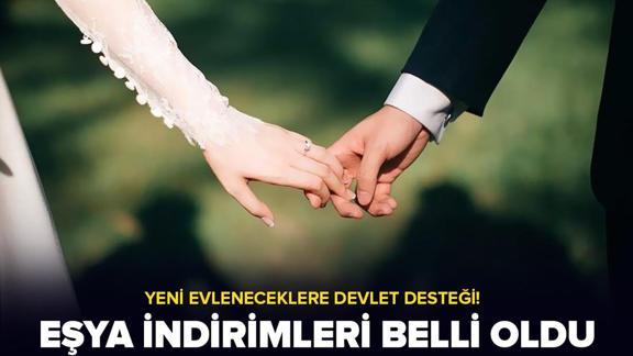 Aile ve Sosyal Hizmetler Bakanlığı, genç çiftlere yönelik destek projeleri kapsamında yeni evleneceklere özel indirim kampanyasını duyurdu. 150 bin TL faizsiz evlilik kredisi ve ulaşım kolaylıklarının ardından şimdi de mobilya, beyaz eşya ve çeyiz ürünlerinde çeşitli markalarla %35'e kadar indirim yapılacak. E-devlet üzerinden alınacak indirim kodlarıyla başvuru yapılabilecek. İşte yeni evleneceklere devlet desteği kapsamında yapılacak eşya indirimleri