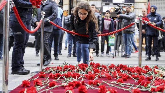 Beyoğlu'nda meydana gelen saldırıda 6 kişi hayatını kaybetmiş, 81 kişi de yaralanmıştı. Sabahın ilk saatlerinde patlamanın olduğu yere gelen vatandaşlar hayatını kaybeden 8 kişinin anısına karanfil bıraktı.