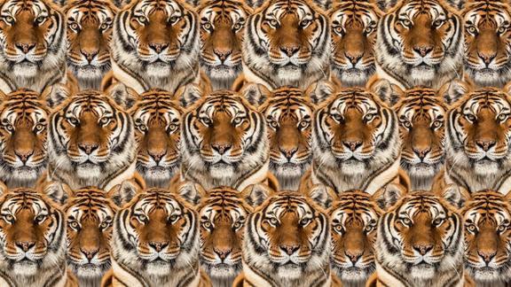 Zeka sınırlarını zorlayabilen bu optik illüzyon testinde, kaplan görsellerinin çoğunlukta olması gizli aslan görselinin bulunmasını oldukça fazla zorlaştırabiliyordu.