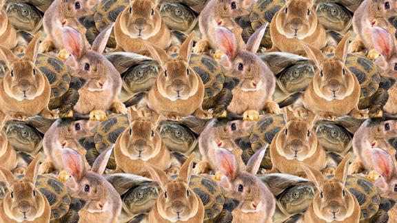 Optik illüzyon testinde hem kaplumbağa hem de tavşan görselleri çoğunlukta bulunuyor. Bunun yanı sıra civciv görselinden sadece 1 adet var. Ayrıca tek görsel küçük boyutta, şeffaf ve yalnızca bir kısmı gözüküyor. Tüm bunlar ise, kaplumbağa ve tavşanların arasından fark edilmesi için üstün zeka ve dikkat gerektirebiliyor.