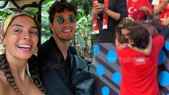 Oyuncu Cedi Osman'ı 2023 yılında nikah masasına oturduğu eşi Ebru Şahin, tribünden destekledi. Polonya karşısında elde edilen galibiyetin ardından duygusal anlar yaşandı.