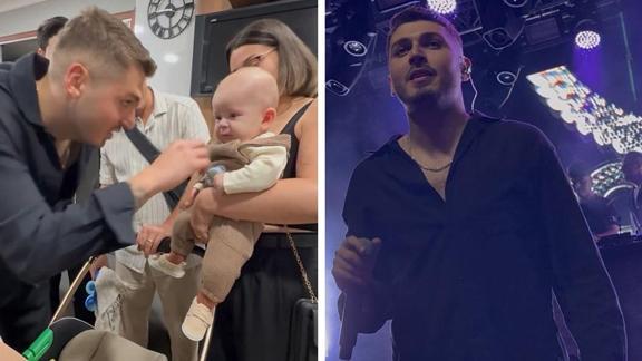 Konser öncesi Çağan Ata ile kulisinde bir araya gelen genç şarkıcı, duygusal anlar yaşayarak Çağan Ata'yı öpüp kokladı.
