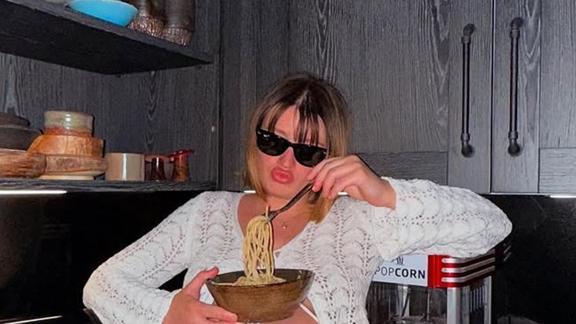 Gizem Karaca, paylaşımına şu notu düştü: "Dikkat, gluten içerir. Evet kızım, anneciğin doğuma yaklaşırken böyle delirdi"