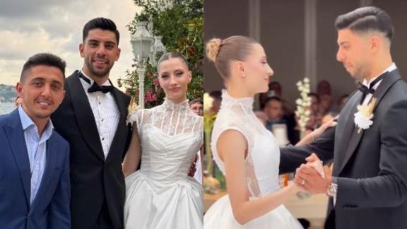 Çiftin görkemli düğününden kareler, sosyal medyadan paylaşıldı. Düğüne gelen isimler arasında; Milli futbolcu Hakan Çalhanoğlu da yer aldı.