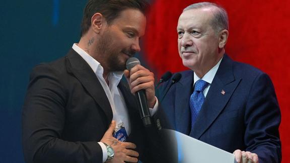 Kızılay için bestelediği şarkıyı sahnede seslendiren Sinan Akçıl'a Başkan Erdoğan ve Kızılay Başkanı Fatma Meriç Yılmaz eşlik etti.