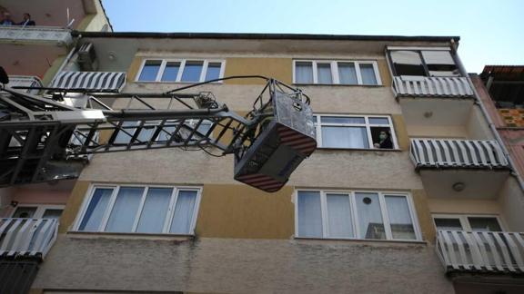 Merdivenli araçla kadının bulunduğu pencereye ulaşan ekipler, L.K. ve oğlunu yükseklik korkuları nedeniyle itfaiye sepetiyle indiremedi.