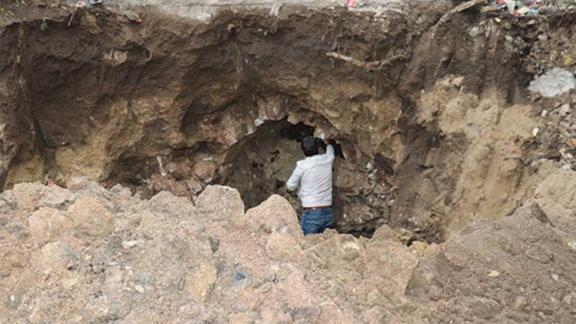Dere Mahallesi'ndeki bir inşaatın temel kazısı sırasında yandaki 4 katlı apartmanın altında tünel olduğunu fark edenler durumu polis ekiplerine bildirdi.