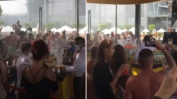 Etkinlik, dün otele giriş yapan Ukraynalı bir kişi tarafından cep telefonuyla çekilerek sosyal medyada paylaşıldı. Sosyal mesafe ve maske kuralının hiçe sayıldığı etkinlikte otel müşterisi oldukları öğrenilen çok sayıda kişi görüntülere yansıdı. Görüntülerde otel çalışanlarının maske takarak servis yaptıkları, etkinliğe katılanların ise tedbirleri hiçe saydığı görüldü.