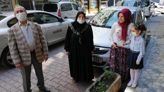 Torunlarıyla ve çocuklarıyla uzaktan da olsa bayramlaşan Hüsnü ve Durdu Dursun çifti daha sonda Bahçelievler Belediyesi ekipleri tarafından tekrar alınarak evlerine bırakıldı.