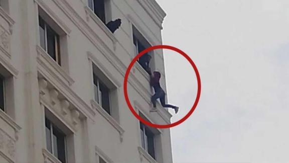 Psikolog ve polis ekipleri D.K.'yi yaklaşık 1 saat boyunca ikna etmeye çalıştı. Ancak tüm çabalara rağmen ikna olmayan D.K., bir anda kendisini boşluğa bıraktı. Hemen hamle yapan 2 polis memuru D.K.'yi son anda kollarından yakaladı. Yürekleri ağızlara getiren olayda, polis, D.K.'yi tekrar odaya çekti.