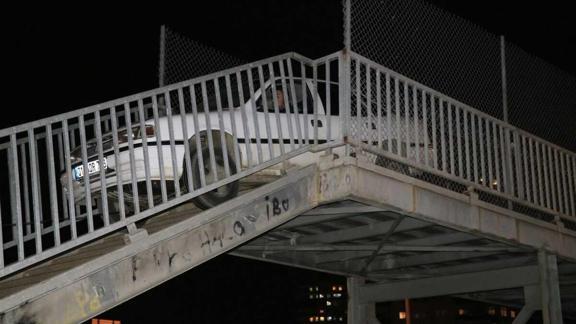 AA'da yer alan habere göre; kimliği henüz belirlenemeyen bir sürücü, Yeni Baraj Mahallesi'nde yayaların otobanın karşısına geçmek için kullandığı köprüden otomobiliyle geçmeye çalıştı.