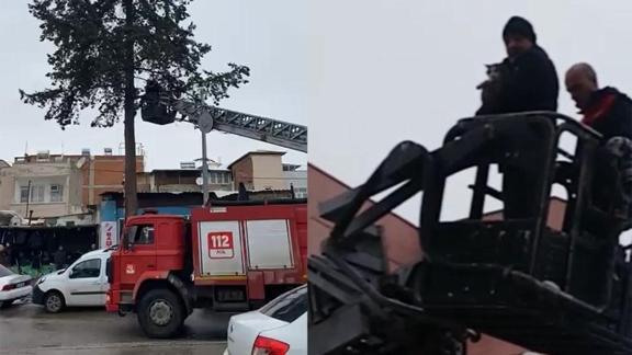 Adıyaman'da, bir ağacın tepesine çıkarak mahsur kalan kedi, itfaiye ekiplerince kurtarıldı.