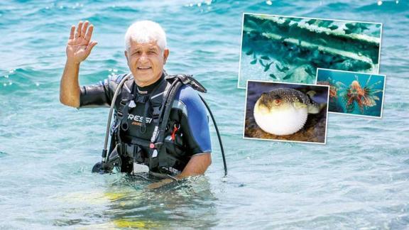 Son dalışında, mağara balığı olarak bilinen pemperis sürüsünü görüntülediklerini anlatan Gökoğlu, "Bu türler bizim tespit edebildiklerimiz. Bu türler yerel su altı yaşamını da tehdit ediyor. Özellikle balon balıkları ahtapotları henüz yavruyken avlıyor. Su altında ahtapotlar yok denilecek kadar azaldı. Aslan balıkları da aynı şekilde kayalık bölgeleri ev olarak bilen lagos ve orfozu avlıyor tüketiyor" dedi.