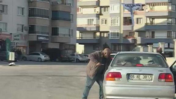 Kamyon sürücüsü, aracından inip koşarak otomobilin yanına geldi. Kamyon sürücüsü, elinde tuttuğu bıçağı otomobildeki sürücüye doğru salladı.Otomobil sürücüsünün bu sırada aracın içinde kendini yana attığı görüldü. Bir süre sonra aracına dönen kamyon sürücüsünün yanına bu sefer otomobildeki kişiler geldi. Kamyondaki sürücü ile otomobilden inip gelenler arasında burada da tartışma yaşandı.