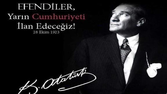 Atatürk'ün 29 Ekim Cumhuriyet Bayramı sözleri yoğun olarak araştırılmaya başlandı. Bu sene (2021) Cumhuriyetin İlanının 98. yılı büyük bir coşku ile kutlanacak. Sosyal medya hesaplarından paylaşım yaparak bu mutluluğu paylaşmak isteyenler Atatürk'ün "Efendiler yarın Cumhuriyeti ilan edeceğiz" sözünü ve resimlerini araştırıyor...