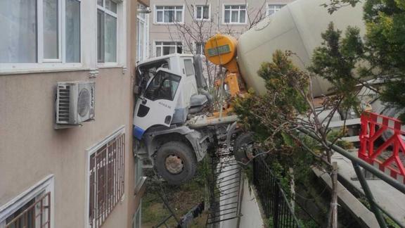 Beşiktaş, Dikilitaş Mahallesi Yeni Gelin Zerde Sokak'ta sürücüsünün direksiyon hakimiyetini kaybettiği beton mikseri, 7 katlı binanın 2. ve 3. katındaki dairelerin duvarına çarptı. Apartman sakinleri kendilerini dışarıya attı. İhbar üzerine olay yerine çok sayıda ekip sevk edildi. Kazada ölen ya da yaralanan olmazken, sürücü gözaltına alındı. DHA-Genel - Türkiye-İstanbul -