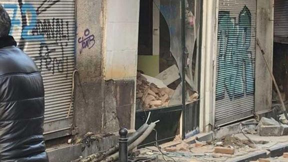 Alt katta bulunan berber dükkanı molozla dolarken, ekipler binanın tamamen yıkılması ihtimaline karşın sokağı şerit çekerek kapattı.