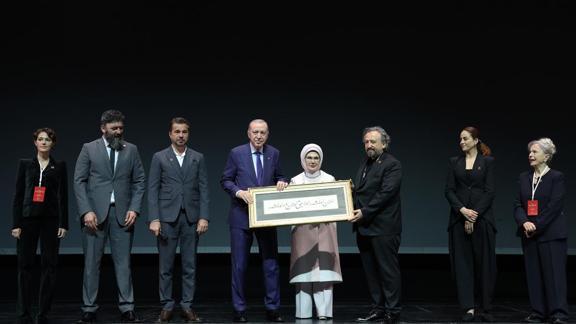 Erdoğan'a Kültür ve Turizm Bakanı Mehmet Nuri Ersoy'da eşlik etti. Atatürk Kültür Merkezi'ndeki gala sanat dünyasından çok sayıda ismi de bir araya getirdi.