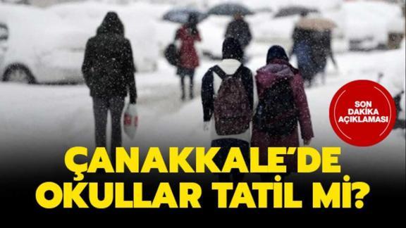 “Çanakkale’de yarın okullar tatil mi?” sorusu ile ilgili Çanakkale Valiliği son dakika açıklaması araştırılıyor. Kar yağışının yurt genelinde etkisini göstermesi ile beraber vatandaşlar okulların kar tatili olup olmadığını öğrenmek istiyorlar. Meteoroloji kuvvetli rüzgar uyarısında bulundu. Rüzgarın; Marmara ve Kuzey Ege ile Batı Karadeniz’in batı kıyılarında kuzey ve kuzeydoğu yönlerden kuvvetli ve yer yer kısa süreli fırtına (50-80 km/sa) şeklinde esmesi bekleniyor. Çanakkale’de bugün hava durumu çok bulutlu, kar yağışlı ve 0 derece olacak. Kar yağışı nedeniyle Çanakkale'de Gökçeada ve Yenice ilçelerinde kar yağışı, fırtına ve buzlanma riski sebebiyle ilk ve orta dereceli okullarda 26 Şubat’ta eğitim ve öğretime ara verildi.