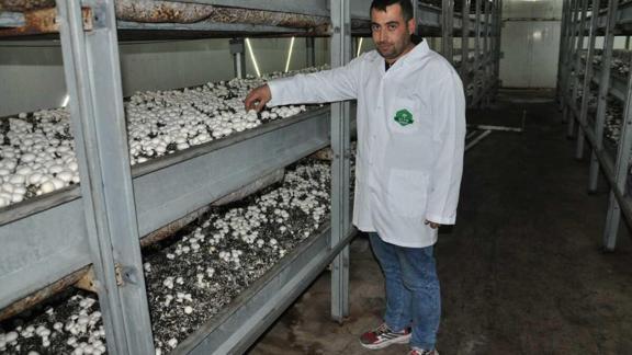 Nevşehir'in Gülşehir ilçesinde hububat ekimiyle uğraşan çiftçi Fatih Çelik, Tarım ve Kırsal Kalkınmayı Destekleme Kurumunun (TKDK) desteğiyle kurduğu kültür mantarı üretim tesisinde günlük bir ton ürün yetiştiriyor.