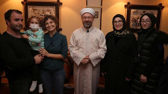 Öykü Arin, annesi Eylem ve babası Çağdaş Yazıcı'yı kaldıkları evde ziyaret eden Erbaş'a, eşi Seher ve kızı Bihter Serra ile Antalya Müftüsü Osman Artan ve İl Sağlık Müdürü Ünal Hülür de eşlik etti.