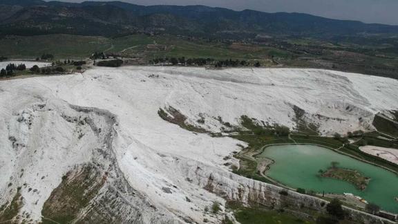 Geçtiğimiz 2019 yılında 2 milyon 580 bini aşkın turist sayısıyla rekor kıran Pamukkale, 2020 yılına ise kötü başladı. Girişlerin yaklaşık 1 aydır durduğu Pamukkale, uzun süredir kapalı kalmasından nedeniyle daha beyaz görüntüsüyle dikkat çekti.