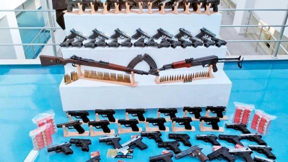 Birer Kalaşnikof ve piyade tüfeğiyle 53 ruhsatsız tabanca, bin 877 mermi ele geçirildi. Silahların tanesinin 7 bin 500 ila 10 bin liraya satıldığı öğrenildi.