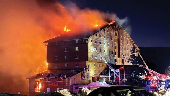 Bolu Kartalkaya Kayak Merkezi'nde 78 kişinin hayatını kaybettiği, 133 kişinin yaralandığı Grand Kartal Otel yangınına ilişkin, aralarında otelin sahibi ve belediye yetkililerinin de bulunduğu 19'u tutuklu 32 sanığın yargılandığı dava, beşinci gününde devam etti. Otel sahibi tutuklu sanık Halit Ergül, müşteki avukatlarının sorularını cevapladı. Kültür ve Turizm Bakanlığı'nın 16 Aralık 2024'teki denetiminde nerede olduğu sorulan Ergül, "Emir, 'Baba bunlar burada her şeye bakıyorlar, kusur arıyorlar.' dedi. Bolu'daydım." dedi. Ergül'ün, "Denetlemede tutanak tutuldu mu?" sorusuna, "Tutulmuştur herhalde" cevabı üzerine avukatın, "Tutanak tarihi 22 Ocak olarak yazılmış. Odalarda duman dedektörünün olduğu yazılmış, duman dedektörü var mı?" sorusuna Ergül, "Uygun denildiği için kendimizi güvende hissettik, duman dedektörü var" karşılığını verdi. Ergül, "Bilirkişi raporunda yangının çıkış sebebi değil ama LPG konusu ölümlerin artmasının birinci sebebi olarak belirtiliyor." beyanı üzerine, "Bilirkişi raporunda 'LPG kontrol edilseydi yangın birkaç dakika içinde sönebilirdi' diyor. Biz onun eksiğini bilmiyorduk. Yangınla ilgili eksiklik olursa gazı keser. Biz de tam zannettik" diye konuştu.