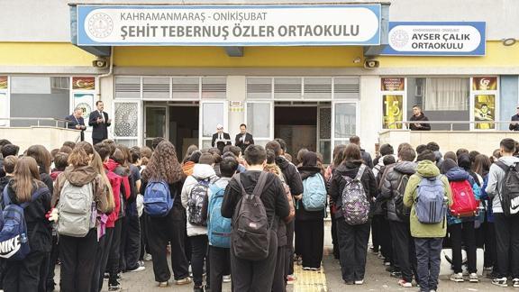Kahramanmaraş'ta 15 Nisan günü düzenlenen silahlı saldırıda bir öğretmen ve 8 öğrencinin hayatını kaybettiği olayın ardından, Ayser Çalık Ortaokulu öğrencileri dün en hüzünlü ders başını yaptı. Saldırının ardından Şehit Tebernuş Özler Ortaokulu'ndaki sınıflara yerleştirilen öğrenciler, kaybettikleri öğretmen ve arkadaşları için anma töreni düzenledi.