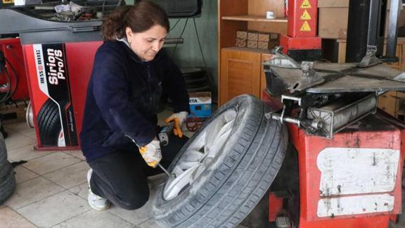 Bir yandan ev işlerini yapan diğer yandan atölyede işleri öğrenen 47 yaşındaki Suna Canpolat, rot balans ayarlarından lastik tamirine kadar tüm işleri kadın eli titizliğiyle yapmaya başladı.