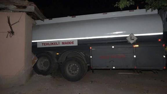 Bir süre sonra frenlerin boşalmasıyla hareket eden tanker, sürücüye ait tek katlı müstakil eve çarptı.