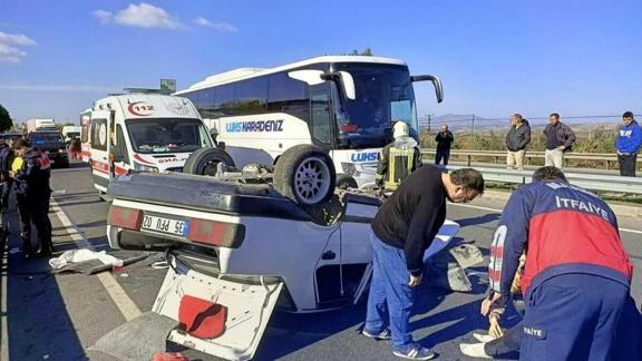 Manisa'nın Salihli ilçesinde, bariyere çarpıp takla atan otomobildeki Sultan Helva (25) yaşamını yitirdi, eşi Emin Helva (26), yaralandı.