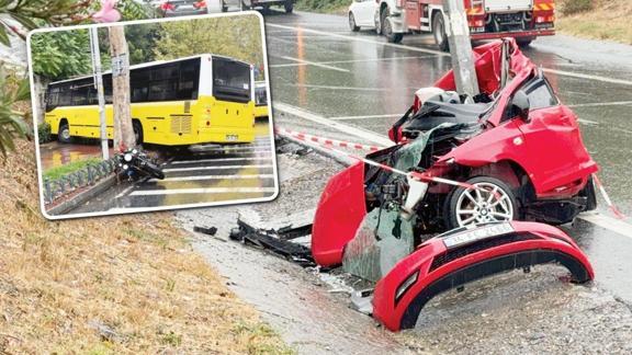 AKŞAM Gazetesi'nin İHA'dan aktardığı habere göre, İstanbul Eyüpsultan'da etkili olan sağanak yağış nedeniyle, direksiyon hakimiyetini kaybeden sürücü Erkan Soytürk, virajı alamayarak aydınlatma direğine çarptı. Kağıt gibi katlanan araçtaki sürücü Soytürk hayatını kaybetti.