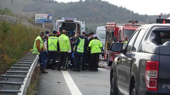 AA'nın aktardığı habere göre, İstanbul-Bursa-İzmir Otoyolu'nda Muratcan Kaya (21) idaresindeki 34 AFG 020 plakalı otomobil, Selçukgazi Viyadüğü mevkisinde aynı yöne giden M.H'nin kullandığı 41 HZ 096 plakalı tıra arkadan çarptı.