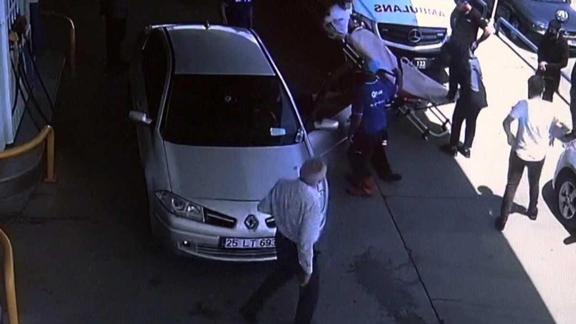 Akaryakıt istasyonu çalışanlarının aracından indirdiği sürücünün kalbinin durduğunu belirleyen sağlık ekipleri, önce yerde sonra ambulansta uzun süre kalp masajı yaptı. Hastaneye götürülen Memiş, yoğun bakım ünitesinde tedaviye alındı. Memiş'i hayata döndürme mücadelesi ise güvenlik kamerasına saniye saniye yansıdı.