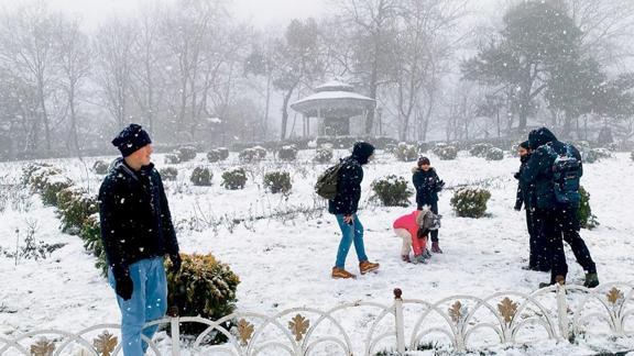 Çamlıca Tepesi'nde kar yağışının etkisini artırmasıyla birlikte, beyaz manzara oluştu. Gezmek için Çamlıca'ya gelen vatandaşlar fotoğraf çektirirken, okulların da tatil olmasını fırsat bilen bazı aileler, çocuklarıyla kartopu oynayıp karın tadını çıkardı.