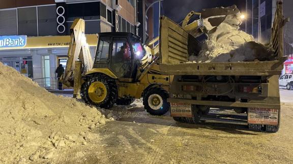 Ardahan Belediyesince cadde ve sokaklarda biriken karlar, kamyonlarla şehir dışına taşınmaya başlandı.