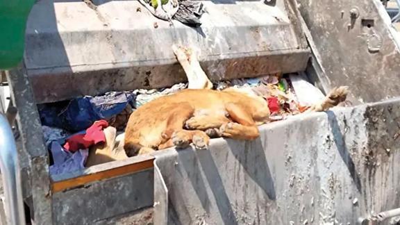 Belediye işçilerinin ölü köpekleri çöpe attığı anlar böyle görüntülendi.